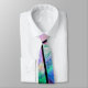 Eine wunderschöne, auffällige Krawatte mit abstrakter Digitalkunst, die an farbenfrohe Buntglaskunst erinnert, mit leuchtenden geometrischen Kreisen und Linien.