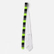 Diese klassische Krawatte weist ein sich wiederholendes Muster aus dicken, grün-gelben, schwarzen und grauen Streifen auf.