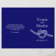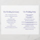 Einfache Kontur zeichnend in Weiß- und Dunkelmarineblau eines Herz-förmigen Knoten Hochzeitsprogramms. Modernes, schlichtes Hochzeitsdesign im modernen Stil, Teil des Liebe knot Hochzeitsfest Set. Bearbeiten Sie dieses Hochzeitsprogramm mit Ihrem eigenen Namen, Terminen, Zeremoniell, Begleitern von Hochzeitsfeiern und vielen Dank. Einfaches und dennoch elegantes Programm ersetzt einfach den Sample-Text durch Ihre Hochzeitsinformationen und faltet die Programme bei Lieferung in der Mitte. Ein perfektes Hochzeitsprogramm für eine einfache, moderne Hochzeit, um Ihnen Ihre Einheit und Ihr Miteinander zu zeigen. Einzigartiges zeichn und Design von Sarah Trett.