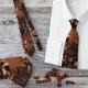 Künstlerische Krawatte mit einem Kaffeemaschinenmuster mit stilisierten "Kaffeetexten" auf einer Bohne mit Lederhintergrund aus Imitat. Sie können das Muster skalieren oder drehen, wenn Sie wollen.