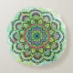 Lebhafte grüne und blaue Farbtöne mit lila und roten Klängen lassen dieses Mandala in jedem Zimmer auffallen.