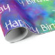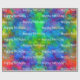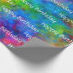 Wunderschönes glänzendes Verpackungspapier mit einem farbigen Regenbogen in einem Design, das zwischen Fraktal-Kunst und Krawatte-Färbung grenzt. "Happy Birthday" kann in Anzug geändert oder ganz gelöscht werden (nur das Textfeld leer verlassen). ** HINWEIS: Die Ansicht "Flat" zeigt einen 1,50 m langen Abschnitt Papier. Die Mindestrolllänge beträgt 2,50 m, sodass die "Naht"-Ansicht zeigt, wo der erste 1,5 m große Abschnitt auf den zweiten 1,5 m langen Abschnitt trifft. Eine 30-Fuß-Rolle zum Beispiel würde zehn 3-Fuß-Abschnitte wiederholen.
