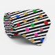 Diese einzigartige Krawatte zeigt ein lebendiges Design aus Streifen, die mit auffallenden farbenfrohen Kreisen verwoben sind. Es ist ein stilvolles Accessoire, das jedem Outfit eine persönliche Note verleiht und perfekt ist, um bei jeder Gelegenheit eine Aussage zu treffen.