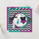 Ein süßes Geschlecht enthüllt eine Party Einladung-Karte mit einem schicken Zickzack Schwarz-Weiß-Druck und einem bezaubernden Polka-Dot-Jumper mit türkisfarbener Krawatte und einem schicken lila Tutu.