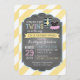 Gelber und weißer Streifendruckhintergrund mit Polkapunkt Pullover Tutu und Streifenpullover mit Krawatte auf Clotheslinezwillingsjungen- und -mädchenbabyduschen-Einladungskarte.