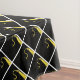 Einzigartige Dekoration für den Abschlussfest-Tisch mit klassischem Schwarz-Gold-Abschlussmützen-Muster.