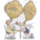Rustikaler Holztäfelungshintergrund mit niedlichen Kantinenzeichnungen mit Denkblasen, die denken: - Kreativität ist magisch, nicht magisch - Kreativität ist ein Medikament, auf das ich nicht verzichten kann - ich Liebe koche mit Wein - manchmal habe ich etwas in das Essen getan. Ich Liebe Kaffee.