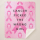 Die Sherpa-Decke ist mit dem Satz "Cancer Picked the Wrong Girl" in modernen schwarzen Schriftzeichen mit symbolischem rosa Band und rosa Farbverlaufshintergrund versehen. Ein nachdenkliches Geschenk für einen Brustkrebskrieger. Gemütliche Decken sind ein Muss bei Brustkrebsbehandlungen und während der Erholung.