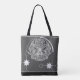 Mut und einzigartig! Das ist eine so schöne Tasche, dass es seltsam ist, Lebensmittel darin zu packen. Dieses Mandala Style Cancer Zodiac Symbol Design ist so eindrucksvoll und reich an verschiedenen Tönen von Silber, Grau und Weiß (das ist repräsentativ für dieses Zeichen). Das Kunstwerk ist hier besonders auffällig, da der Name dieses Sternzeichens in kursiv geschrieben ist und sehr subtil ist. Diese Tasche wäre ein großartiges Geschenk für jeden Zodiac Sign Enthusiast, der in Astrologie, Sternbilder und Sterngucken ist. Das Design ist auf beiden Seiten der Tasche gleich.