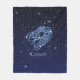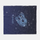 Fleecedecke mit dem Symbol für Krebs in weichem silberblauem Blau, überlagert mit den Sternen der Sterne, vor einem Sternenhimmel-Hintergrund von tief Mitternacht blau bis schwarz.