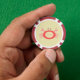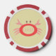 Dieses phantastische Set von Poker-Chips verfügt über eine Kontur einer roten Krabbe mit rosa Beinen und Klauen. Die Krabbe hat große schwarze Augen auf Stielen. Es gibt auch einen rosa Text, in dem Krebs in der Kontur der Krabbe steht. Dieses Design ist ideal für Menschen mit Geburtstag zwischen 21. Juni und 22. Juli.