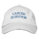 Weiße bestickte hat "Cancer Survivor" in blauen Buchstaben.