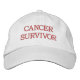 Weiße bestickte hat den Aufdruck "CANCER SURVIVOR" in roten Buchstaben.