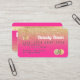Eine elegante, moderne, stilvolle Schönheitssalon Hair und Makeup Künstler Kreditkarte Stil Visitenkarte mit einem modernen Drehbuch Schriftart Typografie auf einem schicken Imitat gelb Gold Glitzer ombre Farbverlauf und glänzend neon rosa modischen Hintergrund. Alle Texte sind anpassbar, fügen Sie Ihre sozialen Medien. Mit Imitaten Goldstreifen. Fügen Sie Ihr Logo, Ihr Monogramm und QR-Code hinzu.