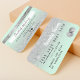 Eine elegante, moderne, stilvolle Schönheitspflege Hair und Makeup Künstler Kreditkarte Stil Visitenkarte mit einem modernen Drehbuch Schriftart Typografie auf einem schicken Imitat grau silbernen Glitzer ombre Farbverlauf und glam weichen Pastells mint grün angesagten Hintergrund. Mit Imitaten silberne Streifen. Fügen Sie Ihr Logo, Ihr Monogramm und Ihren QR-Code hinzu.