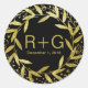 Kreis der Blätter Wreath Gold Glitzer | schwarz Runder Aufkleber