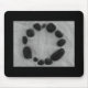 Von der "Mosaiken von Mary" Sammlung. Ein Kreis der schwarzen Steine auf weißem Sand symbolisieren das Stipendium des Lebens in der Gemeinschaft und heilend geschieht der, wenn wir angeschlossen werden. Steine von Wilmington, NC, USA. Höflichkeit von Mary Daugharty.