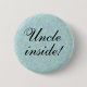 Schwarzer Ausdruck "Onkel inside!" auf türkisfarbenem Muster. Geeignet bei der Geburt oder Babydusche Party, oder zu Ehren eines Lieblings-Onkel. Text kann leicht angepasst werden. Es gibt auch ähnliche Knöpfe mit blauem, rosa oder pfirsichfarbenem Hintergrund.