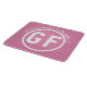 Dieses personalisierte Ausschnitbrett ist für jedermann perfekt, das das freie Gluten isst. Es kennzeichnet Ihre kundenspezifische Mitteilung über einem GF Kreis-Artlogo im Weiß gegen einen rosa Hintergrund. Benutzen Sie das Schablonenfeld, um dieses mit einer Namens- oder kurzen Mitteilung leicht zu personifizieren.