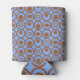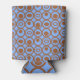Diese kann kühler hat eine geometrische Gestaltung von Kreisen in Reihen mit Kreisen oder Ovalen in braun auf einem Feld von blau.