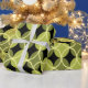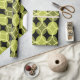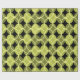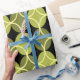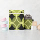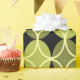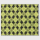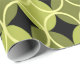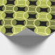 Dieses Verpackungspapier hat ein modernes Design von offenen Kreisen auf geschlossenen Kreisen in Grün- und Gelbtönen auf einem schwarzen Feld. Das könnte gut für Vatertag sein.