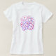 Das ist ein skurriles geometrisches Muster wiederholender, überlappender Kreise in Rosa-, Blau-, lila- und Magentatönen auf weißem Hintergrund. Kleine rote Kreise verstreut. Das Muster wird auf der Rückseite wiederholt.