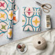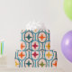Dieses Verpackungspapier hat ein modernes Design von aquamarinen Kreisen, die in Retrofarben mit Sternen in jedem von ihnen zusammengeschraubt sind.