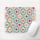 Dieses Mauspad hat ein modernes Design von aquamarinen Kreisen, die in Retrofarben mit Sternen in jedem von ihnen zusammengeschraubt sind.