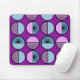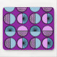 Dieses Mauspad hat ein modernes Design von Halbkreisen, einige mit Sternexplosionen, einige mit kleinen Kreisen, andere nur solide, blau und lila.