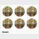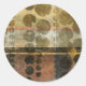 Dieses zeitgenössische Werk ist mit kreisförmigen grünen Tröpfchen gestaltet. Eine dünne goldene Linie durchquert die Arbeit. Bestellen Sie noch heute Ihren Ausdruck!