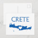 Teilen Sie Ihre Liebe von Kreta mit dieser Postkarte! Auf der Vorderseite befindet sich eine Karte der Insel mit einem Innern, die mit der blauen Farbe der Flagge Kretas gestaltet ist.
