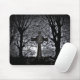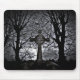 Das ist ein altes Foto eines von Bäumen umgebenen Kreuzkopfsteins.