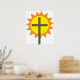 Ein kreuzes Set gegen eine hellgelbe Sonne. Dieses Design sieht auf diesem Poster wirklich effektiv aus