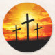Kreuze, Silhouetten mit Sonnenuntergang Runder Pappuntersetzer