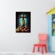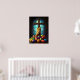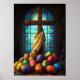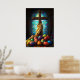 Schauen Sie sich dieses religiöse Osterposter mit einem Kreuz in einem lebendigen Kirchenfenster an, mit Ostereiern als Feriendekor.