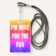Praktischer Kreuzfahrtschiff Lanyard, um Ihre Kabinenstateroom-Schlüsselkarte anzubringen. Frag auf dem Schiff, damit deine Karte gestochen wird. Spaß und festlich blau "I'M HERE FOR THE FUN" lustiges Kreuzfahrtschiff Abzeichen. Ideal zum ersten Mal Kreuzfahrer zu häufigen Kreuzfahrern, die nur gewollt haben, Spaß zu haben! Rosa und andere lustige Farben.