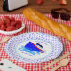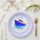 Fun nautic Thema personalisierte Hochzeitsfeier Papier Teller mit einem Kreuzfahrtschiff Ozeanwellen und Schiffe Anker Grafik