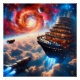 Ein Hochglanzposter des Kunstwerks "Crusing the Cosmic Clouds" von Planetary Prankster.