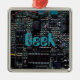Viereckiges Premium-Ornament mit einem Bild der Computertechnik und dem individuell anpassbaren "Geek" in aquamariner Schrift. Sehen Sie sich die gesamte Sammlung This & That Ornament im ZUHAUSE-Bereich an.