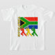 Drei silhouettierten Kricketspieler vor der südafrikanischen Flagge mit dem Ländernamen Südafrika auf der Seite.