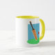 Einfache grafische Illustration eines Kricketschlägers und des Balls. Bild verfügbar auf verschiedenen Geschenken und Produkten. Tassen.