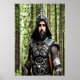 Ein Porträt eines Kriegers mit Schnurrbart und Bart mit Helm und Rüstung, die im Wald stehend sind. Das ist eine künstlerische KI.