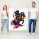 Das Design besticht durch einen furchtlosen Krieger auf einem galoppierenden Pferd in einem einzigartigen, abstrakten Kunststil. Die Silhouette ist in dunklen Farbtönen gehalten, während die kräftigen, rosa, orangefarbenen und gelben Farbtupfer dem Bild eine dynamische, moderne Ästhetik verleihen. Der Krieger trägt Rüstung und hält eine Waffe, wodurch das Motiv mächtig und episch erscheint. Ideal für Fans von mittelalterlicher, Fantasie und Kriegerkunst.