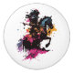 Das Design besticht durch einen furchtlosen Krieger auf einem galoppierenden Pferd in einem einzigartigen, abstrakten Kunststil. Die Silhouette ist in dunklen Farbtönen gehalten, während die kräftigen, rosa, orangefarbenen und gelben Farbtupfer dem Bild eine dynamische, moderne Ästhetik verleihen. Der Krieger trägt Rüstung und hält eine Waffe, wodurch das Motiv mächtig und episch erscheint. Ideal für Fans von mittelalterlicher, Fantasie und Kriegerkunst.