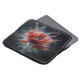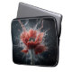 Das Bild zeigt einen Single roten Mohn in voller Blüte, Set vor einem krassen schwarzen Hintergrund. Die Blume steht im Mittelpunkt, mit ihren zarten Blütenblättern, die sich weit ausbreiten und ihr dunkles Zentrum in voller Darstellung. Der auffälligste Aspekt des Bildes ist das Wasser, das sich um den Mohn schmilzt. Es scheint, als ob die Blume im Zentrum einer Explosion steht, mit Wassertropfen, die in der Luft eingefroren sind, was einen dynamischen und fast ätherischen Effekt erzeugt. Der Kontrast zwischen dem kräftigen Rot des Mohns und dem dunklen Hintergrund sowie der scharfe Fokus auf Blume und Wasser sorgen für ein faszinierendes und künstlerisches Foto.