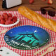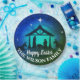 Krippe in einfachem Blau, Grün und Schwarz mit weißem Text für Sie anpassen und weiße Sterne. Rundpapier.