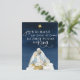 Dieses moderne religiöse Weihnachtspostkartendesign besticht durch eine Krippe in Aquarellfarben auf marineblau blauen Hintergrund.