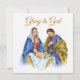 Eine Krippenlandschaft der heiligen Familie mit Jesus geboren im Stall.