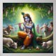 Dieses Krishna-Kunstwerk zeigt die hinduistische Gottheit, die unter dem Kadamba-Baum seine Flöte spielt und die göttliche Musik und Ruhe symbolisiert. Es ist in indischer Kunst gewurzelt und verbindet spirituelle Dekoration mit religiöser Kunst, die den Charme des göttlichen Flötenspielers und die ruhige Aura dieses geliebten indischen Gottes einfängt.