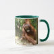 Rett die Orang-Utans. Eine ganz besondere Orang-Utan-Tasse mit dem Orang-Utan "Sprechmodell" Krista Orangutan aus Borneo. Diese Tasse ist besonders, weil sie Krista als Kleinkind zeigt, das während der Dschungelschule auf einem Stock kaut und als eine junge Frau wächst. Der Verkauf dieser Tasse unterstützt die Konservierungsarbeiten im Orangutan Care Center auf der Insel Borneo.
